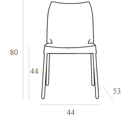 Eloksallı alüminyum ayaklar ile polipropilenden mamul oturak ve sırt birleşiminden oluşan ürün, istiflenebilmesi, tasarımının sadeliği, zengin renk seçenekleri, UV koruma, antistatik katkılı oluşu ve kayganlığı önleyici ayak tıpaları ile hem iç mekan hem de dış mekan kullanımında vazgeçilmezleriniz arasına girecek bir üründür.